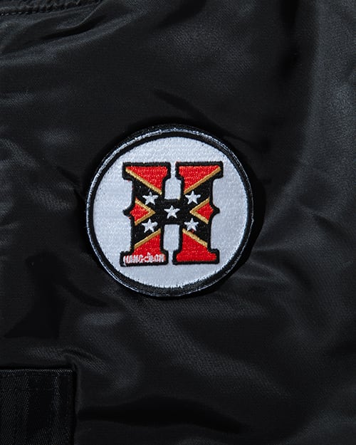 米空軍のフライトジャケットの中でも一番ポピュラーなTYPE MA-1ジャケット。当時の物をベースに作製されたMA-1は当時と同じく高密度で肉厚なミリタリーナイロンを使用し、ボリューミーな中綿を入れ保温性も高い作りに。可動域を考慮したやや太めなアーム部分と、裏地は良く見受けられるオレンジではなく、同色タイプにてシンプルになっております。フロント両胸にはブランドロゴのオリジナルワッペンをオン。